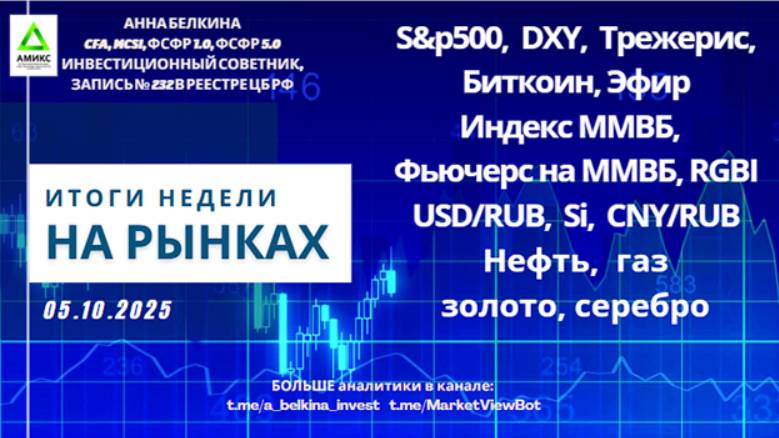 Итоги недели на рынках – 05.10.2025 #SP500 #DXY #RGBI #USDRUB #Brent #Gas #Gold #SLV #BTC #ETH