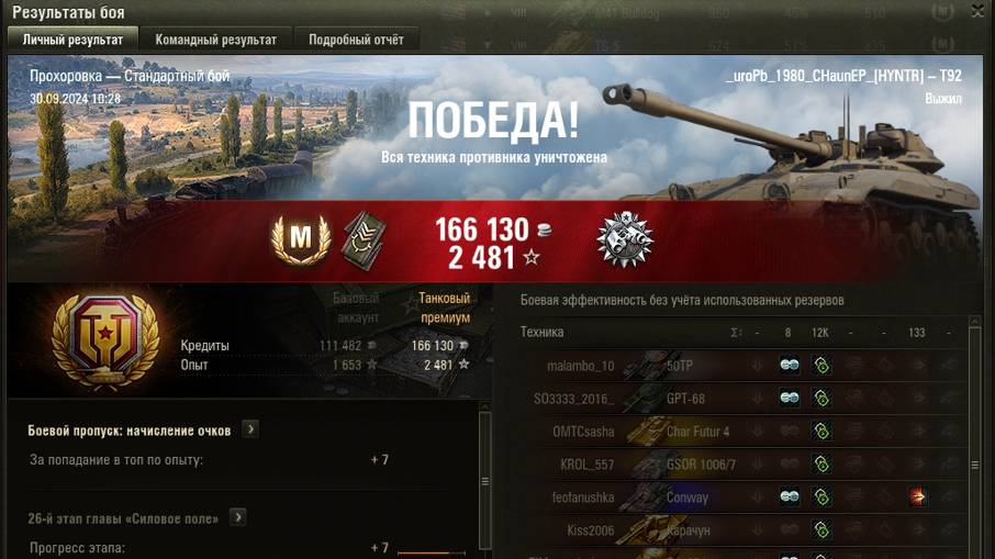 ПРОХОРОВКА МАСТЕР на Т92 ОПЫТ: 1503 СУММАРНЫЙ УРОН: 12198 медаль ДОЗОРНЫЙ