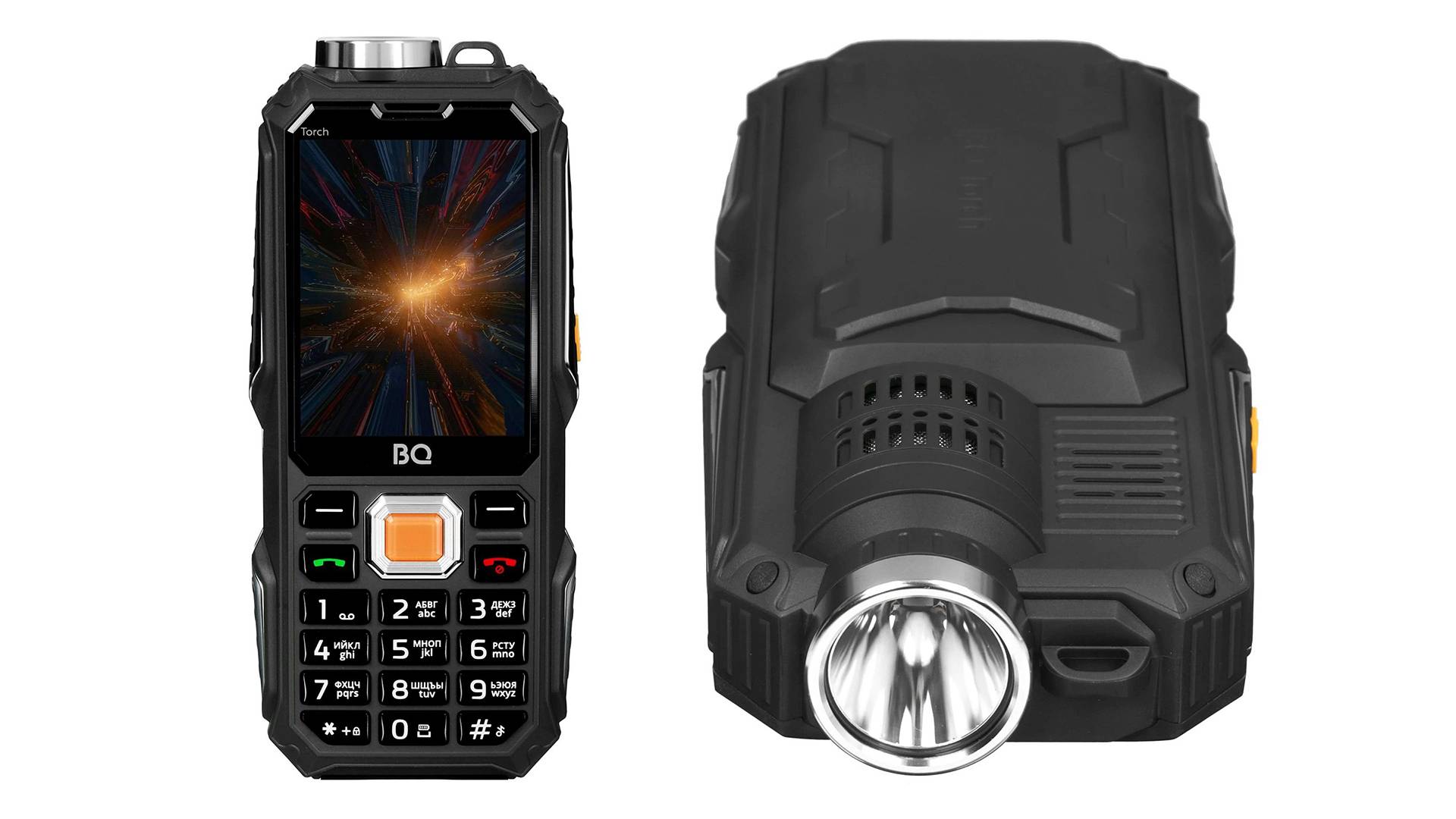 Мобильный телефон без камеры на 4 sim-карты с мощным фонариком и функцией повербанк