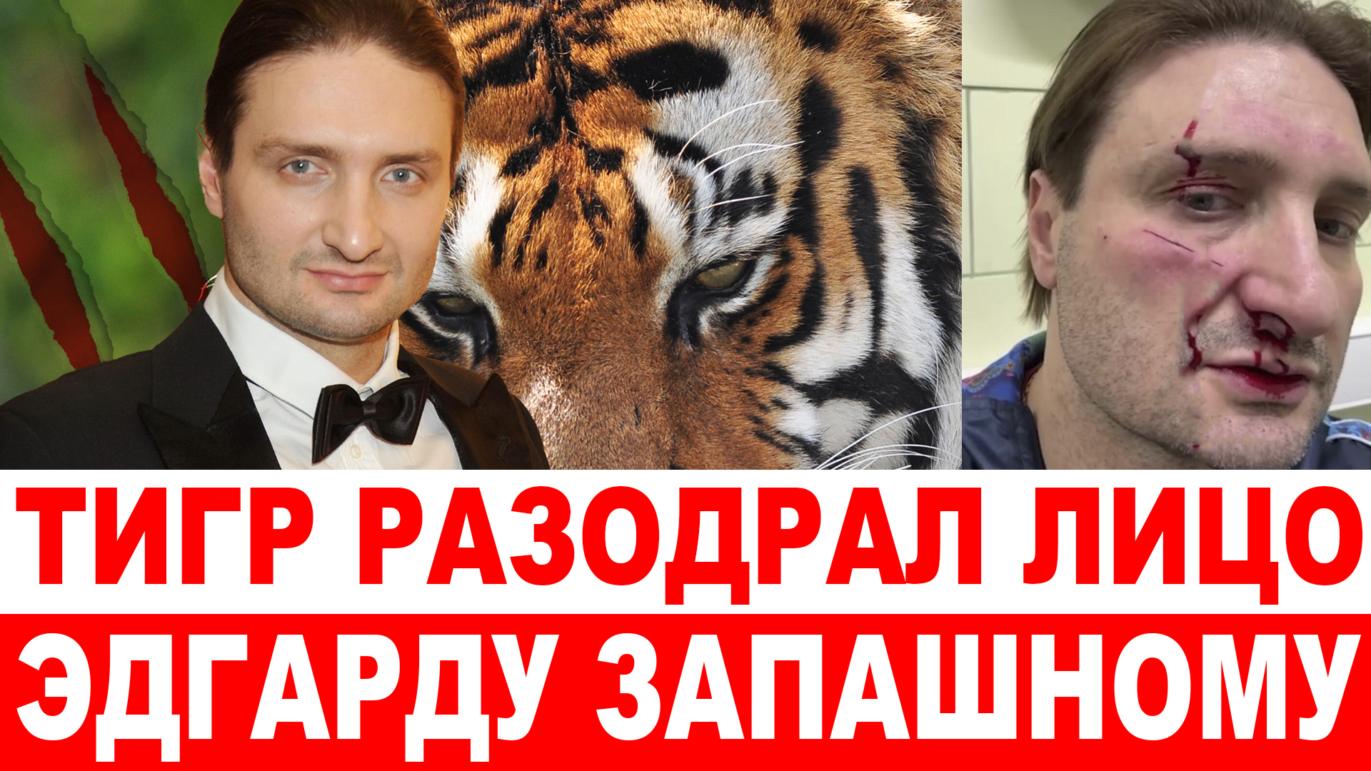 Тигр разодрал лицо Эдгарду Запашному — видео Эдгард Запашный днем проводил тренировку в цирке, как вдруг случилось страшного — его задел тигр. Дрессировщику пришлось экстренно ехать в больницу. Страшными кадрами 46-летний дрессировщик поделился у себя в социальных сетях. В ролике видно, как Эдгард сидит в приемной у доктора, а та вытирает ему кровь с лица. У Эдгарда сильный подтек в области правого глаза, щеки, а также кровь во рту. Все равно, как только доеду до больницы, об этом узнает пресса, так что лучше сам расскажу. Меня на репетиции зацепил за лицо молодой тигр Рой. Это не была его атака для того, чтобы убить меня. Он просто отмахнул лапой, а я в это время отвлекся на своего молодого помощника. Как говорится, сам виноват, моя ошибка ЭДГАРД ЗАПАШНЫЙ Легендарный дрессировщик призвал всех успокоиться и не переживать, он проведет несколько часов в больнице, после чего собирается отдохнуть и вернуться на тренировки. Отметим, что несмотря на руководящую должность в цирке, Эдгард Запашный продолжает сам выходить на арену и постоянно тренируется вместе с командой. Он лично занимается всеми шоу и успевает решать административные проблемы.