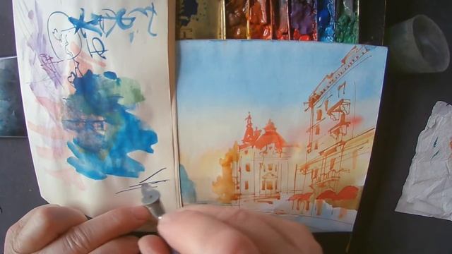 Городская зарисовка Акварельная графика Мастер-класс Реальное рисование с пояснением 06.11.2022