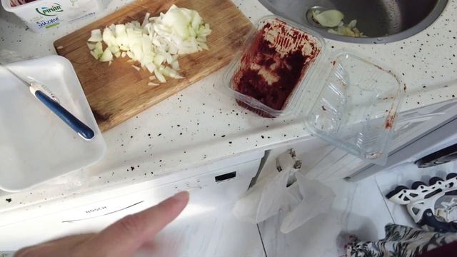 ФАСОЛЬ: 2,5 стакана(200мл) белая фасоль 1 большая луковица 1 стол.ложка томатной пасты(можно чуть меньше) 1/2 стол.ложки перечная паста(не обязательно) мясо-по вкусу и по возможности 1/3 ч.ложки молотый черный перец соль по вкусу вода на 2-3 пальца выше фасоли подсолнечное масло для обжаривания лука и мяса