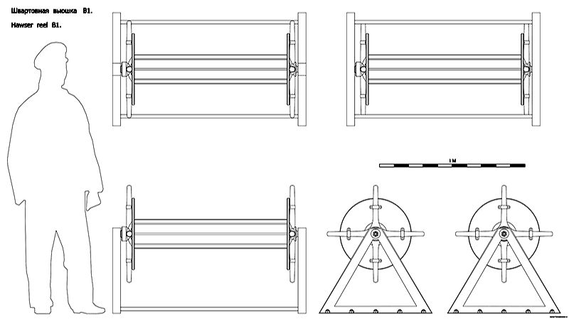 Швартовная вьюшка B1. Чертёж. Hawser reel B1. Drawings.