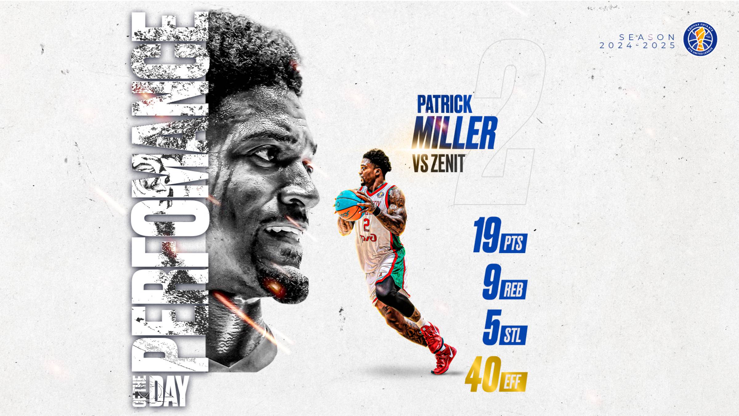 Перфоманс дня – у Патрика Миллера! Разыгрывающий «Локо» провел на паркете 29:30 минут, записав на свой счет 19 очков, 9 передач, 5 подборов и 5 перехватов. Встреча с «Зенитом» стала для Миллера лучшей по коэффициенту полезности за время выступления в Лиге – 40 баллов эффективности! Патрик помог красно-зеленым сохранить победную серию – «Локо» забирает пятую игру на старте чемпионата!
