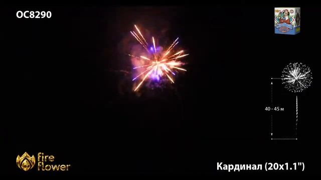Батарея салютов Кардинал ОС8290, 20 залпов, калибром 1,1 дюйма (28 мм), высотой до 28 м