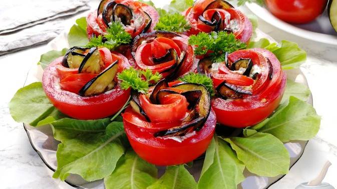 "Розы" на закуску ПОМИДОРЫ С БАКЛАЖАНАМИ И СЫРОМ