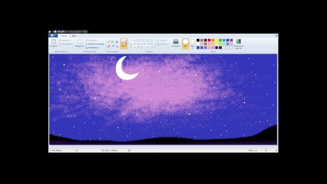 Картина "Одуванчики под луной" в графическом редакторе на компьютере