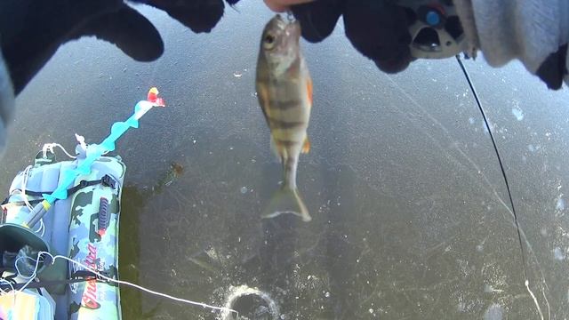 Выехали на пруд ловить окуня, а ловится не только он. Сезон твердой воды начался без трофеев :)