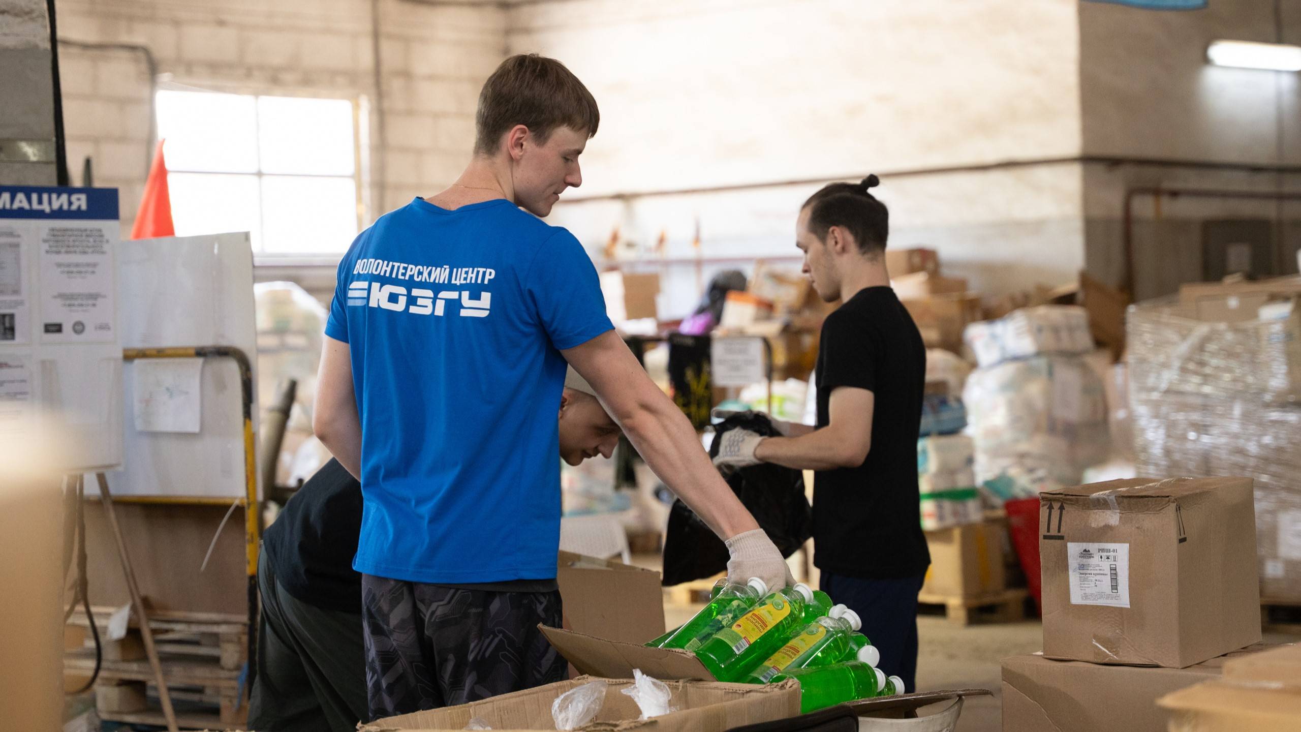 Добровольцы ЮЗГУ трудятся на складе Народного фронта