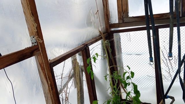 Томаты в парнике 7 апреля.Мороз -3 ,выпал снег😱😱😱