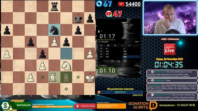 ОСНОВНОЙ ДОНАТ - (КИВИ ДОНАТ) - http://bit.ly/qiwisolo ПОДДЕРЖКА СТРИМА - (ДОНЭЙШН АЛЕРТС): http://bit.ly/donatchess STREAM SUPPORT (STREAMLABS): http://bit.ly/Streamlabschess ♟Вызвать стримера на товарищескую игру: https://lichess.org/?user=kubra#friend Игроки со знаком вопроса ? рядом с ником в игру не принимаются! Если вы хотите сыграть без очереди то становитесь спонсором или отправляйте донат с вашим ником на сайте Lichess и тогда вы сразу же будете играть без очереди. ▰▰▰▰▰▰▰▰▰▰▰▰▰▰▰▰▰▰▰▰▰▰▰▰▰▰▰▰▰▰▰▰▰▰▰▰▰▰▰▰▰▰▰ Продолжительность стрима - 2 часа. При хорошей активности (много зрителей, лайков, донатов) - продлевается по настроению стримера. Приятного просмотра! ▰▰▰▰▰▰▰▰▰▰▰▰▰▰▰▰▰▰▰▰▰▰▰▰▰▰▰▰▰▰▰▰▰▰▰▰▰▰▰▰▰▰▰ Становитесь спонсором канала: http://bit.ly/Sponsorchess Вступайте в клуб на Личесс: http://bit.ly/lichesskubra Скачивайте программу для стрима Streamlabs OBS, поддерживайте стримера и покоряйте Интернет: http://bit.ly/programstreamlabs ПРАВИЛА ДЛЯ МОДЕРАТОРОВ: https://yadi.sk/i/-9d_6GVkK1x0tA ПРИЯТНОГО ПРОСМОТРА! В ЧАТЕ РАБОТАЮТ РОБОТЫ. КОМАНДЫ ДЛЯ БОТОВ: БОТ Rutony: !level - узнать свой уровень в чате !time - узнать сколько времени ВЫ на стриме !sub, подписка, лайк - подписка на канал ---------------------------------------------------------------------------------------------------------------------------------------------------- БОТ Nightbot: !rasp- Расписание стримов на текущий месяц (не работает) !donate - Пожертвование каналу !solo - Подписка на канал !live - Подписаться на второй live канал !vk - Вступить в группу Вконтакте ▰▰▰▰▰▰▰▰▰▰▰▰▰▰▰▰▰▰▰▰▰▰▰▰▰▰▰▰▰▰▰▰▰▰▰▰▰▰▰▰▰▰▰ Подписаться на канал: http://goo.gl/ti2Yk8 Подписаться на второй канал Блиц и Этюды: https://goo.gl/APq1kW Подписывайтесь на мои другие соц.сети: Контакт - https://vk.com/solo170885 Одноклассники - https://ok.ru/oleg.solomakha1 Твиттер - https://twitter.com/solo170885 Facebook - https://www.facebook.com/oleg.solomakha Инстаграмм - https://www.instagram.com/solo170885/ ---------------------------------------------------------------------------------------------------------- Multistreaming with https://restream.io/?ref=YonW Support the stream: https://streamlabs.com/solo170885