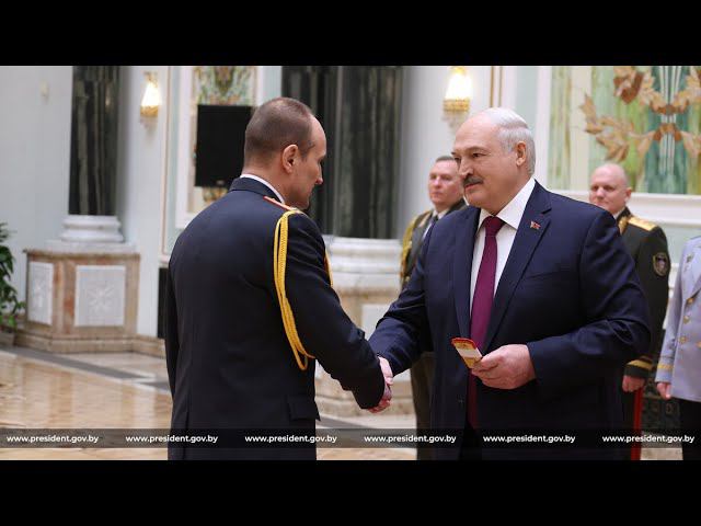 Президент Беларуси Александр Лукашенко вручил государственные награды и генеральские погоны представителям высшего офицерского состава. Торжественная церемония состоялась во Дворце Независимости. Президент Беларуси Александр Лукашенко вручил государственные награды и генеральские погоны представителям высшего офицерского состава. Торжественная церемония состоялась 23 февраля во Дворце Независимости. Как заметил Президент, в этот день во Дворце Независимости награды получают те, кто делает все для того, чтобы сохранить страну и чистое небо над ней - истинные защитники Отечества за боевые заслуги в мирное время. "И мирным для нас оно остается потому, что наши воины стоят сегодня на пути реального врага как преграда. Стоят непреодолимой стеной, своевременно выявляя и задерживая диверсантов, проводя разминирование взрывных устройств", - сказал Александр Лукашенко. "У нас спокойствие и тишина, потому что наши парни внедряются в террористические группы с риском для своей жизни, перекрывают каналы поставок в страну смертоносного оружия и боеприпасов, пресекают шпионскую деятельность зарубежных спецслужб, - обратил внимание Глава государства. - Наш народ спит спокойно, потому что в боевых операциях, порой с риском для жизни, участвуют и офицеры, и генералы. Сегодня лучшие из них удостоены высоких государственных наград и высших воинских званий". Президент поблагодарил военных за службу и за то, что гибридные атаки на Беларусь не переросли в полномасштабную горячую бойню. "Спасибо всем, кто плечом к плечу стоит рядом с вами, оберегая мир и покой на родной земле", - добавил он. Обращаясь к каждому, кто выбрал благородную профессию - Родину защищать, а также ко всем, кто уже сейчас мечтает когда-нибудь надеть военный мундир и с честью служить своей стране, своему народу, Александр Лукашенко подчеркнул: "На наши плечи возложена высочайшая ответственность за будущее Беларуси". И речь, по словам Президента, не только о готовности встать на защиту страны с оружием в руках, не допустить ее втягивания в конфликт, но также и о важной задаче по воспитанию подрастающего поколения. "Вы - живой пример этому поколению. Кто, если не вы, должен стать примером исключительной преданности Отечеству? Кто, если не вы, может быть примером мужества и доблести? Примером, который воспитывает без слов, - сказал белорусский лидер. - Ведь как бы ни развивались современные технологии, как бы ни совершенствовались средства ведения боя, без стойкости и крепости духа воина нет и не может быть побед. Опять, как всегда, в центре внимания - человек". Президент еще раз поздравил всех с Днем защитников Отечества и Вооруженных Сил, поблагодарил за ратный труд, мужество и самоотверженность, пожелал счастья, здоровья и успехов в службе на благо Родины. Александр Лукашенко подчеркнул, что этот праздник не только мужской, он для всех, кто носит погоны: "Он уже стал всенародным - женским, мужским праздником. Потому что очень много наших добрых доблестных женщин носят погоны военнослужащего". Глава государства вручил погоны генерал-майора милиции Андрею Паршину, генерал-майора Владимиру Белому, Сергею Лагодюку и Валерию Ревенко. Орденом "За службу Родине" III степени Александр Лукашенко наградил полковников юстиции Сергея Гамко и Александра Семеника, генерал-майора Александра Н