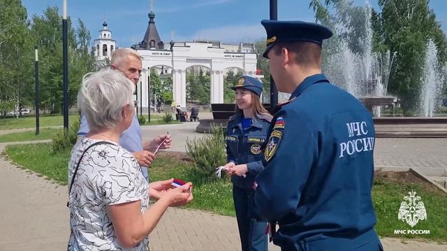 В преддверии Дня России сотрудники МЧС России вручили костромичам бело-сине-красные ленты
