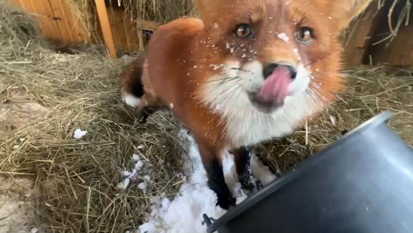 Лиса-Алиса. Лис Игнис исследует содержимое ведра