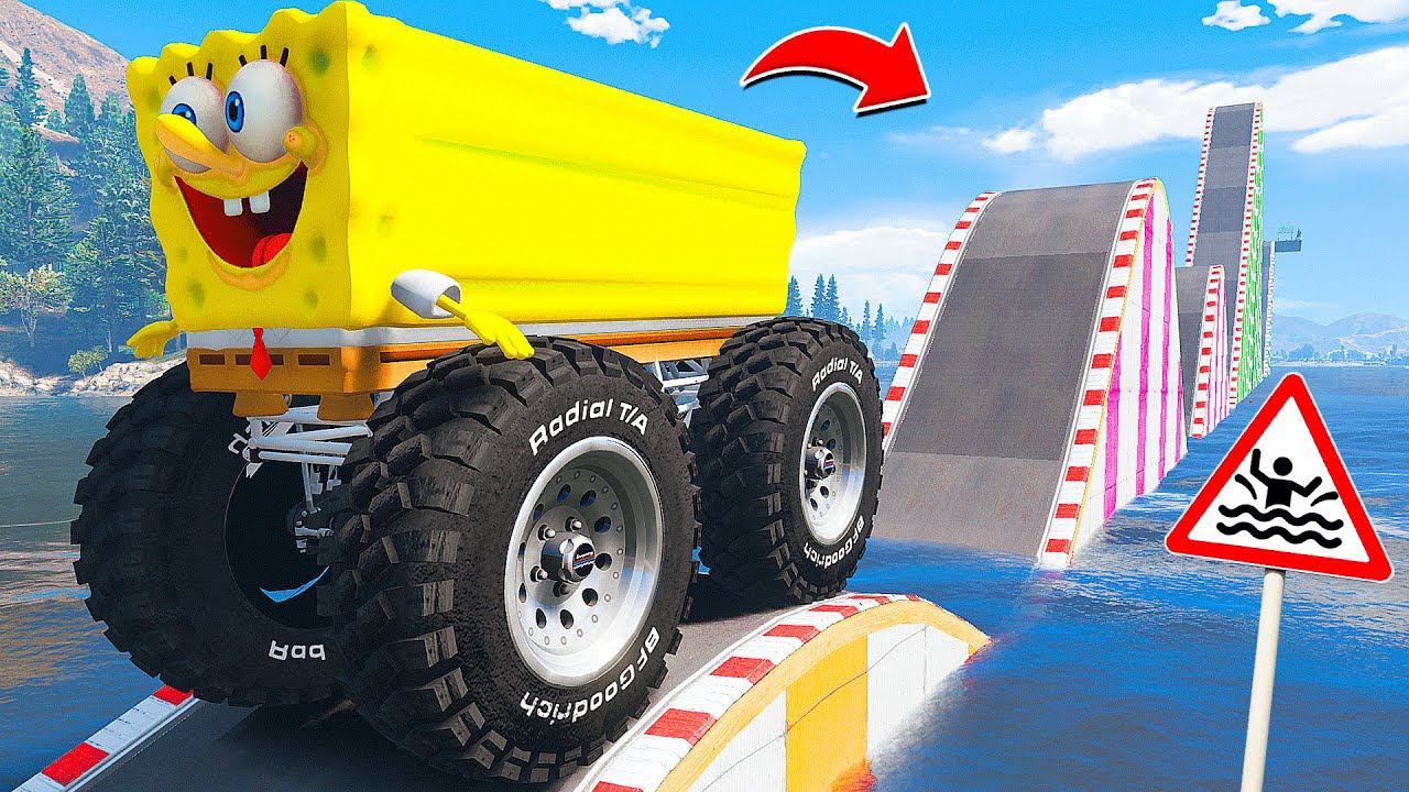 ПРОЕХАЛ ВОДНЫЕ КОЧКИ на ГИГАНТСКОМ СПАНЧ БОБ в ГТА 5 МОДЫ - ЭКСПЕРИМЕНТЫ в GTA 5 MODS