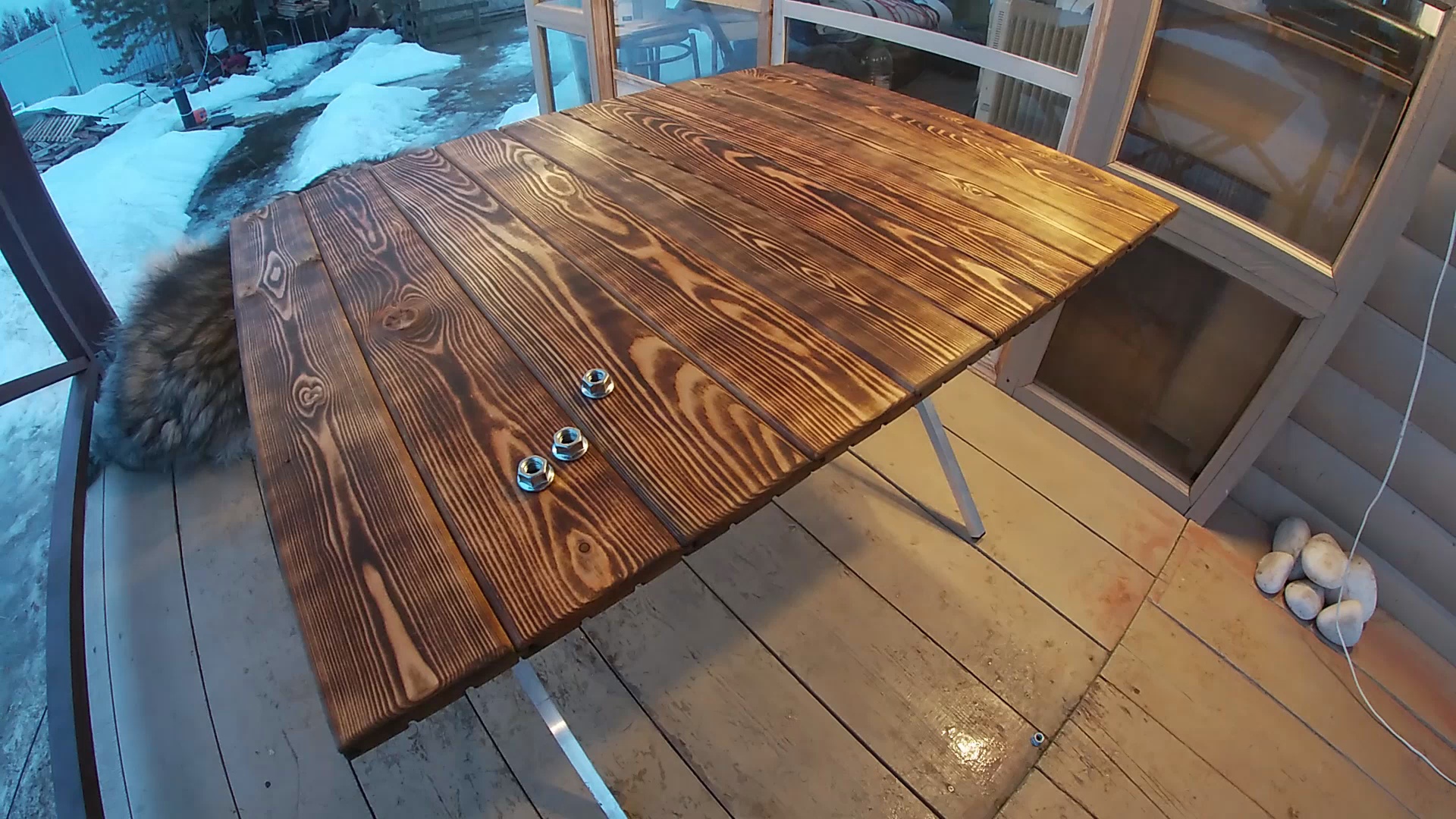 Раскладной стол из обрезков вагонки и алюминия для пикников и отдыха на природе