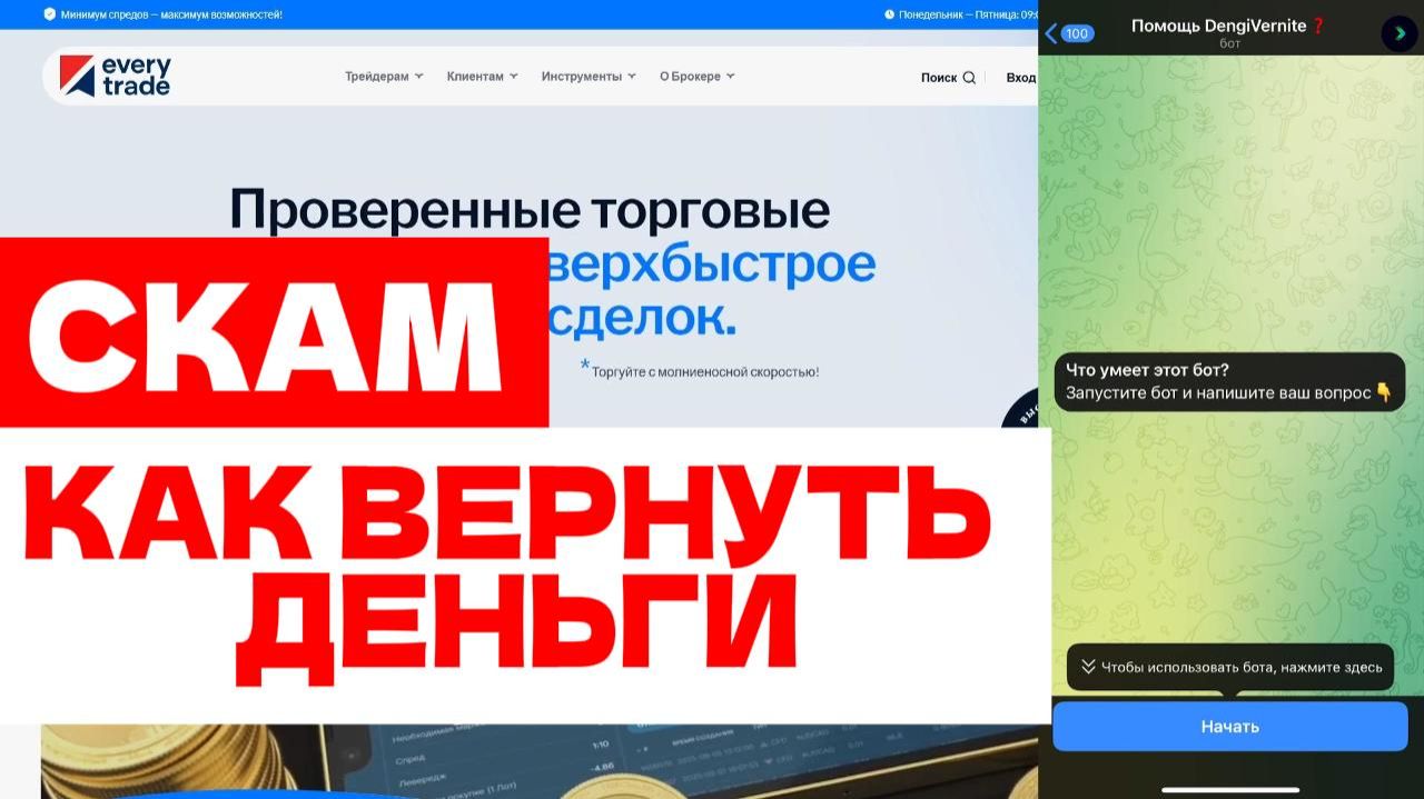 Обзор брокера Every Trade (everytrade.org), отзывы трейдеров. Это очередной брокер мошенник? Как можно вернуть свои деньги? Если вы стали жертвой финансовых мошенников: брокеров, казино, подставных криптобирж или купили онлайн-курс, который не оправдал ожиданий, свяжитесь со мной в телеграме https://t.me/DengiVernite