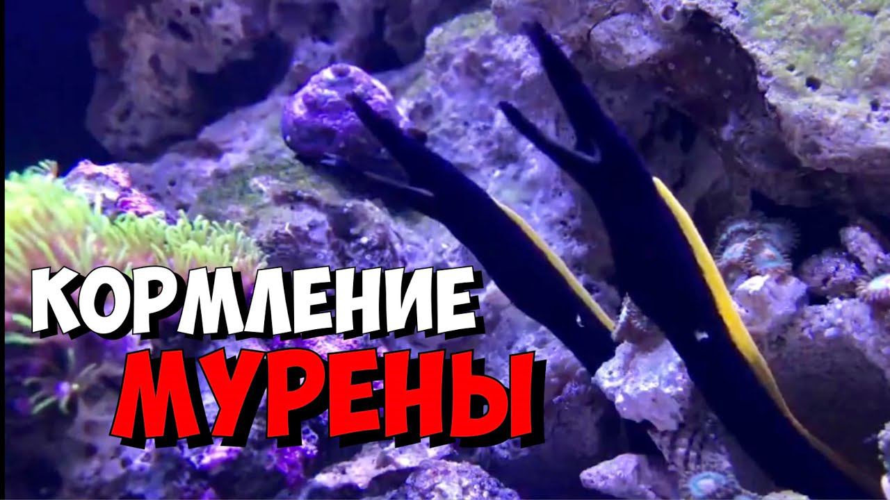 Кормление мурены в морском аквариуме