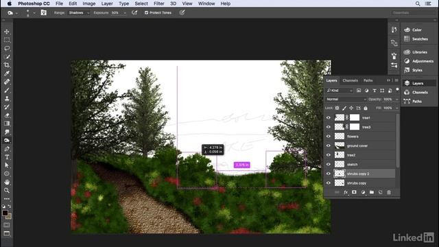 01 - Create a tranquil landscape Add a path and shrubs