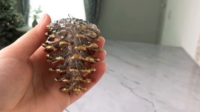 Ёлочная игрушка ЛЕДЯНАЯ ШИШКА, акрил, прозрачная с золотом, 8 см, T2416-2