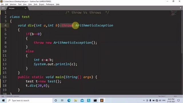 throw and throws program in java | Learn Coding