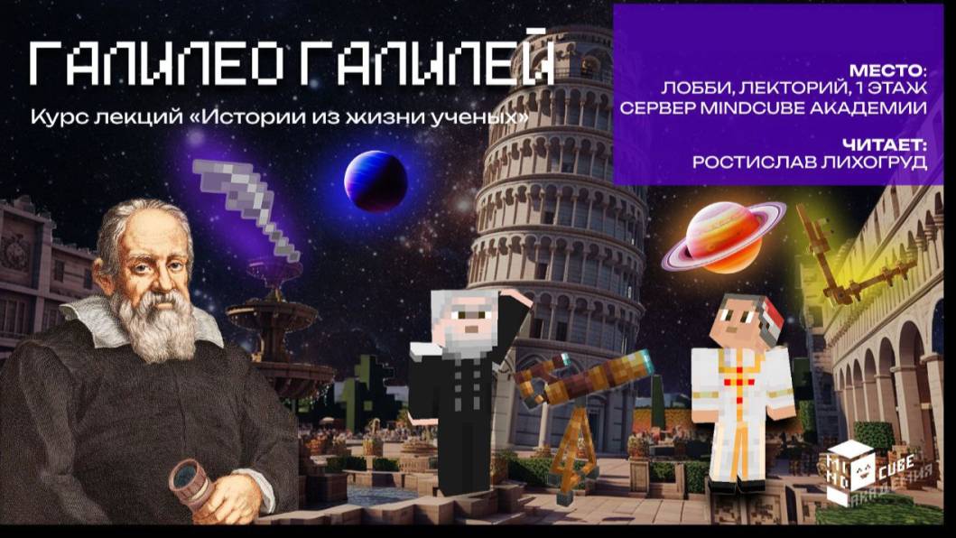 Добро пожаловать в MindCube Академию — место, где обучение превращается в приключение прямо в мире Minecraft! Сегодня мы отправляемся в путешествие по звёздам вместе с Галилео Галилеем — человеком, который навсегда изменил науку. ✨ Что вас ждёт в этой лекции: 🌍 История жизни Галилея и его путь к открытиям 🔭 Как он создал и усовершенствовал телескоп 🌙 Первые наблюдения Луны, планет и спутников Юпитера ⚡ Почему его открытия перевернули представления о Вселенной 🔥 И как он отстаивал свои идеи даже перед сопротивлением общества Галилей доказал, что наука — это смелость смотреть на мир по-новому, и именно благодаря таким людям мы сегодня знаем, как устроена Вселенная. ⚡ Образовательные лекции в MindCube Академии выходят каждую субботу! Актуальное расписание и все анонсы — в нашем Telegram-канале (ссылка в шапке профиля). Подписывайтесь, ставьте лайк 👍 и пишите в комментариях, какого учёного или изобретателя вы хотели бы увидеть в следующих лекциях! ПОДПИСЫВАЕМСЯ: https://t.me/+pt8GX7Bghfo1OWY6 https://vk.com/mindcubeacademy?from=groups https://www.instagram.com/mind_cube_academy/ https://www.facebook.com/mindcubecademy/?locale=ru_RU https://www.tiktok.com/@mindcube_academy https://rutube.ru/channel/30277525/ #MindCube #Майнкрафт #Образование #MinecraftЛекции #Галилей #Астрономия #Учёные #НаукаДляВсех #ОбразованиеВИгре #МайнкрафтАкадемия #ЛекцииВМайнкрафте #ИсторияНауки #УчёныеВMinecraft