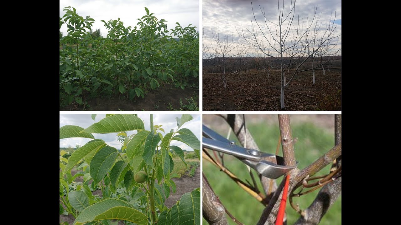 Бытует много мнений по поводу обрезки сада грецкого ореха. Производить обрезку или нет, если да, то в какой сезон - весенний, летний, осенний, какую лучше формировать крону. Что такое обрезка "на кольцо". Все это мы постараемся показать в этом видео и как всегда с практическими примерами с нашего сада. 1. Первая обрезка в моем саду началась с технического среза сразу же во время посадки сеянцев. Технический срез нужен для лучшего укоренения и приживаемости саженца. Также технический срез ускоряет рост будущего дерева и позволяет сформировать нужную Вам крону. Вдобавок скажу Вам, что верхняя почка на стволе сеянца, как правило, подвержена вымерзанию, поскольку верхняя часть ствола часто не успевает дозревать к концу сезона, поэтому при техническом срезе мы ничего не теряем. 2. Далее в первый год после посадки из оставшихся почек у нас образуются молодые ветви, из числа которых мы выбираем лидера, а остальные прищипываем. Лидера мы подвязываем к опоре и он уходит в интенсивный рост, а прищипнутые ветви снабжают наше дерево питательными веществами. С лидера мы формируем будущий ствол дерева. В первый год лидер может вырасти от 1 до 2 м. Вообще, можно сказать, что в первые год-два наш сад мы будем в большей мере не обрезать, а прищипывать, формируя нужную Вам крону дерева еще на стадии зарождения ветви. Далее, конечно, будет преобладать обрезка. На второй год на высоте не меньше 1 м начинаем формировать будущую крону нашего дерева. 3. Различают по способу формирования кроны лидерную обрезку и чашевидную (чашеобразную). Лидерная техника обрезки подразумевает распределение каркасных веток вокруг ствола по спирали. Расстояние по вертикали — 0,5 м одна от другой. При чашевидной технике обрезки штамб срезают на высоте около 2 метров а у дерева оставляют 4 скелетные ветви, которые равномерно распределены вокруг ствола. Между побегами интервал составляет 30 см. 4. Выбор сезона обрезки сада. Я рекомендую производить ее весной и летом. Весной после последних заморозков производить основную обрезку, а в течение лета – дополнительную. 5. Не рекомендую производить обрезку молодого сада на зиму. При радикальной обрезке дерево может вымерзнуть. Также нежелательна обрезка ранней весной, поскольку Вам еще неизвестно как сад перенесет весенние заморозки, а поэтому каждая ветвь, даже лишняя – дорогая. 6. Многие сталкиваются с таким понятием как развилка. Развилка может быть как при посадке на самом саженце, так и образоваться во время роста. Развилку нужно обрезать, особенно это касается тех, кто использует механизированную уборку урожая, поскольку это место будущего возможного надлома дерева. К развилке также можно отнести и ветви, растущие под острым углом, - их оставлять нежелательно. Правильный угол расположения ветвей по отношению к стволу – 60 градусов, рядом с этим значением угол – допустимый. Ветви с углом 90 градусов и более, а также с углом 45 градусов и менее недопустимы и подлежат обрезке. 7. Пару слов по высоте кроны. Высокую крону формируют для сада с механизированной уборкой. Но даже при ручной уборке нежелательно оставлять нижние ветви (на высоте до 1 м и жирующие ветви). В первые годы они конечно не мешают, однако через 3-5 лет от своей тяжести они будут буквально лежать на земле. 8. Ну и пару слов по поводу правильного среза. Правильный срез делается "н
