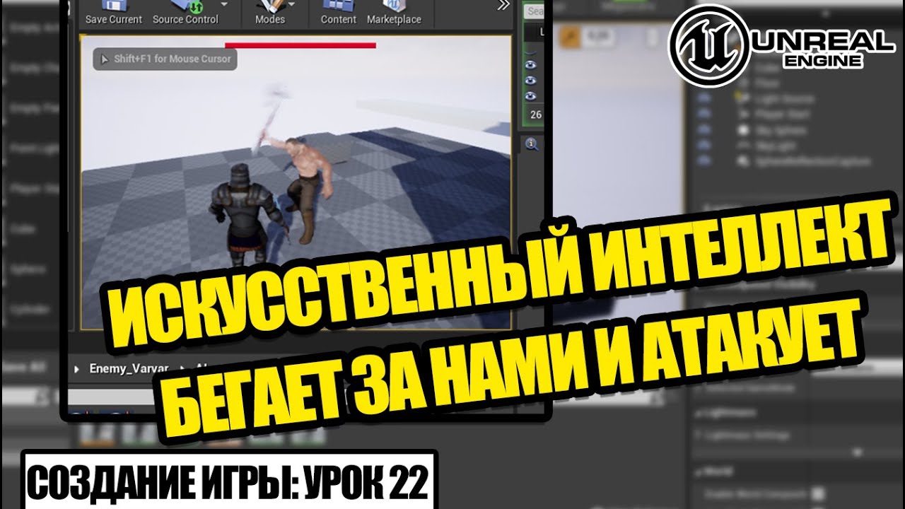 Искусственный интеллект бегает за нами и атакует - Создание игры в Unreal Engine. Урок 22
