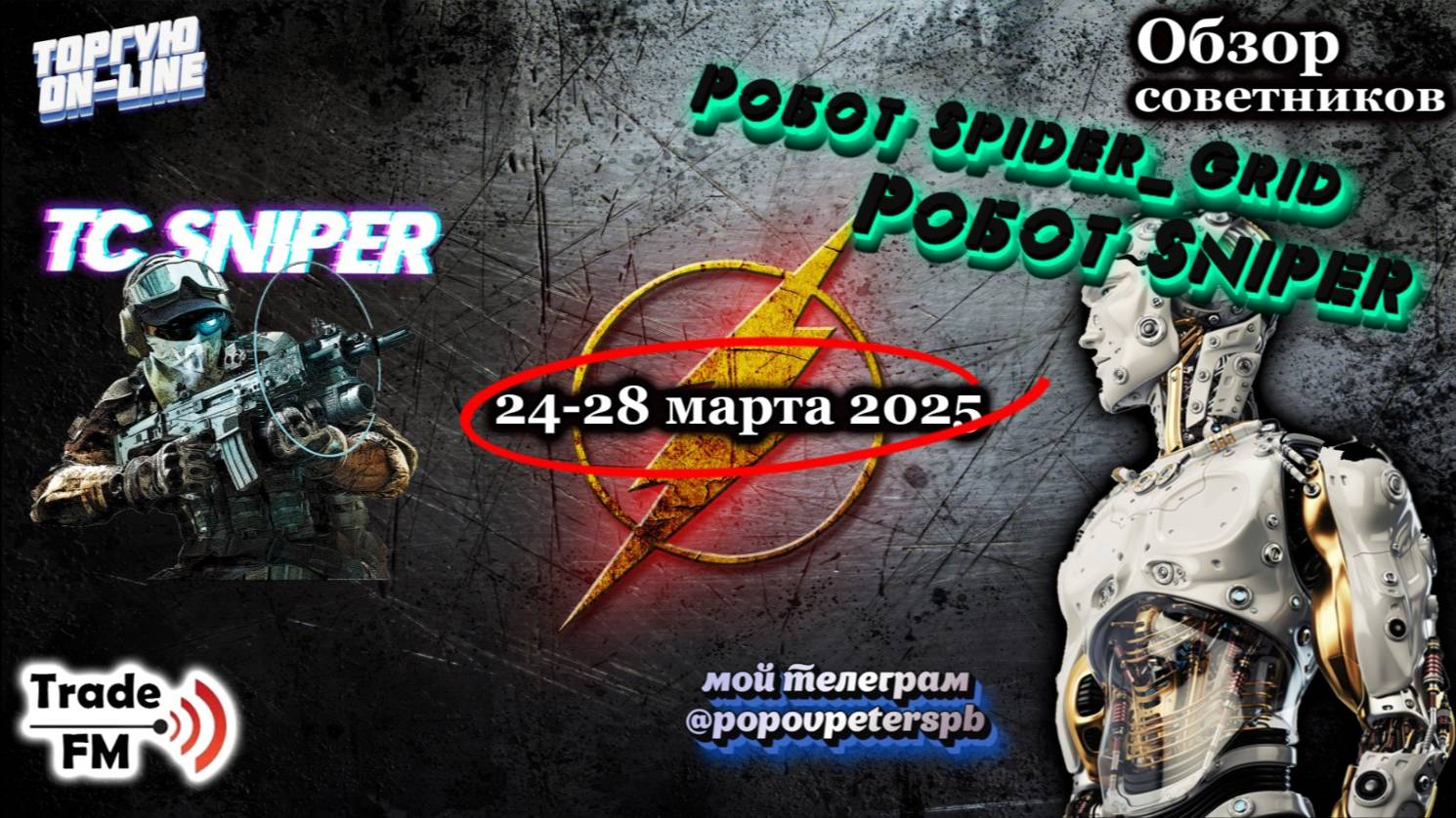 Всем привет. Мой канал - единственный, где показываю работу своего торгового советника SniperSP для рынка форекс, где бот зарабатывает в режиме онлайн. Показываю все сделки бота, статистику и принцип работы советника. Также, для всех пользователей бота SniperSP есть отдельный канал в телеграм, где постоянно оказываем тех. поддержку. Советник SniperSP написан точно по системе SPIDER и СНАЙПЕР. Обе системы совмещены в этом боте. Каждая сделка имеет стоп и тейк Бот не усредняется, Бот не строит сетку ордеров Бот не использует Мартингейл Работает на полном автомате и зарабатывает Бесплатно сигналы на рынок форекс Брокеры партнеры, которые дадут вам лучшие условия для получения советника SniperSP GracexFx https://gracexfx.com/?promo=6959353 Амаркетс https://profit-market.info/fx/?g=ELIG6 Робофорекс https://my.roboforex.com/en/?a=crjw FxPro https://fxpro-direct.com/ru/partner/9161671 Grand Capital https://ru.gcoption.com/?note=6005329 Открытая ссылка на канал в ТЕЛЕГРАМ: https://t.me/Trade_fm_forex Телеграм: @popovpeterspb https://vk.com/trade_fm