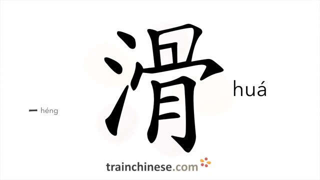 滑 (huá) slippery; smooth; comic; crafty; to slip, slide