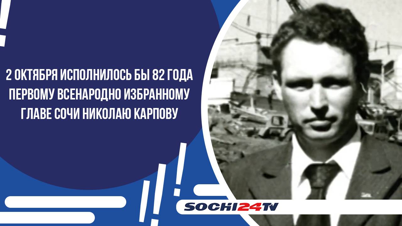 2 октября исполнилось бы 82 года первому всенародно избранному главе Сочи Николаю Карпову. Политик, руководитель и почетный гражданин города стоял у истоков развития современной южной столицы. С 1991 года по 2000-е он активно участвовал в жизни курорта, способствовал развитию православия на побережье. #сочи24 #новости #сочи #новостисочи Телефон редакции: +7 (988) 235 10 20 (WhatsApp/Telegram) Почта: sochi24.tv@yandex.ru Сайт: https://sochi24.tv Одноклассники: https://ok.ru/sochi24 Яндекс Дзэн: https://zen.yandex.ru/sochi ВК: https://vk.com/sochi24tv Телеграм: https://t.me/sochi24tv Тик Ток: https://www.tiktok.com/@sochi24.tv