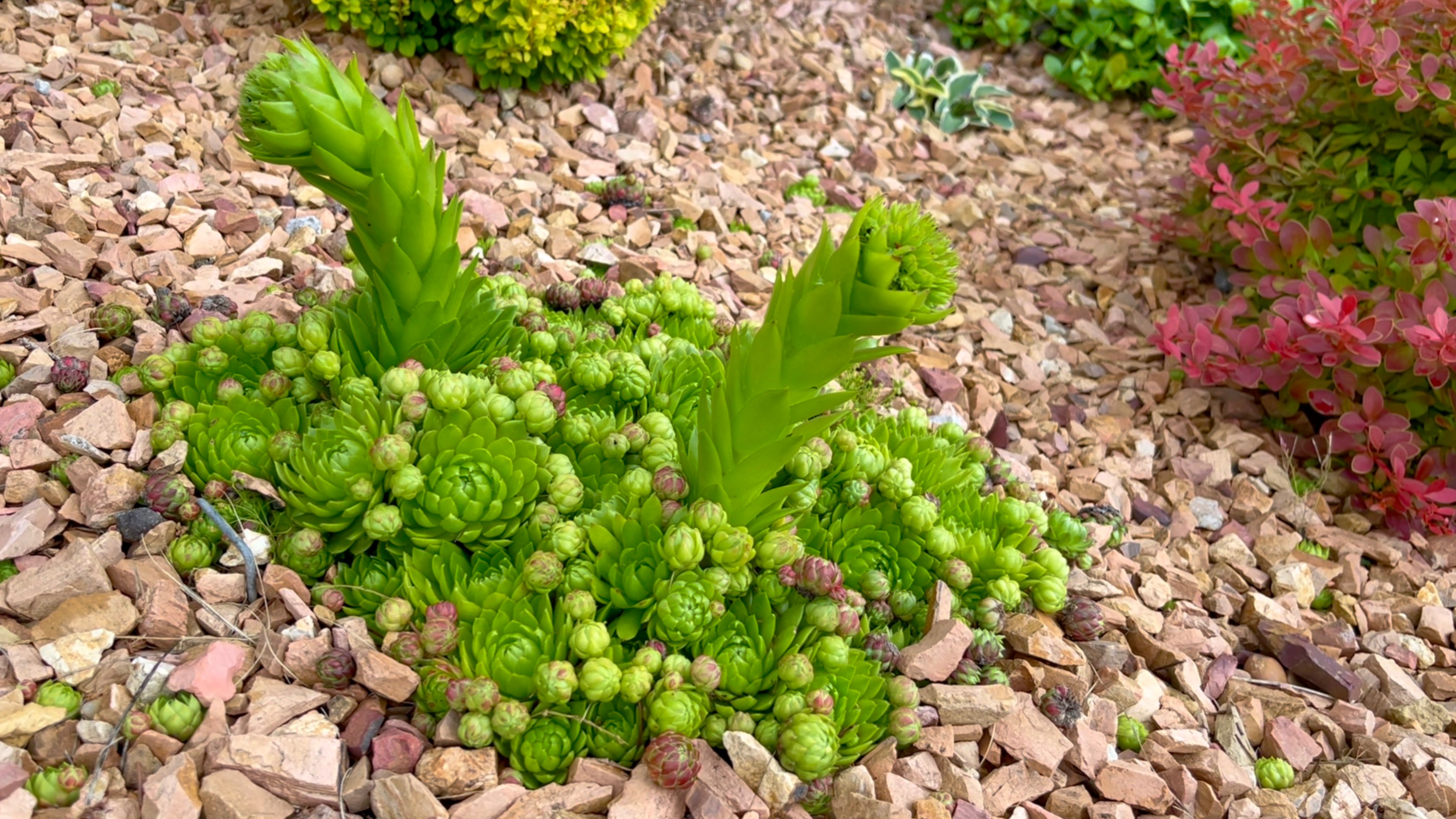 Чудесное интересно растущее растение для рокария и альпинария. Молодило в саду.