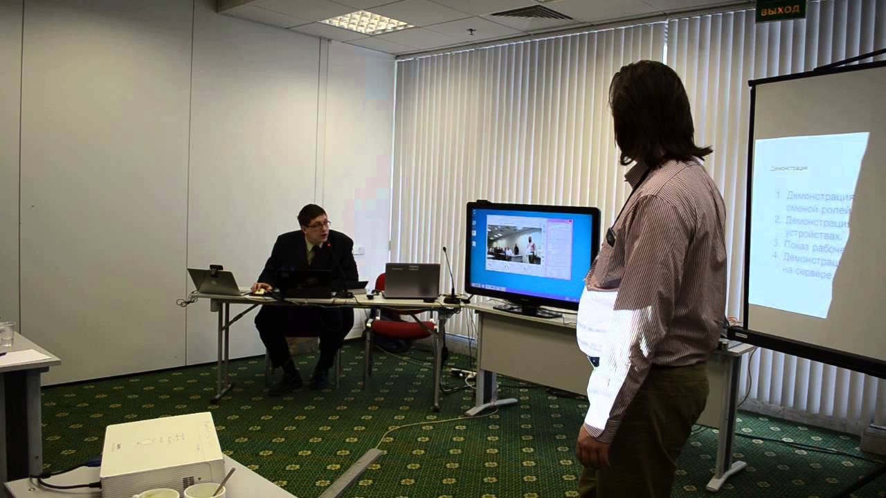 Демонстрация селекторной видеоконференции со сменой ролей и конференции на мобильных устройствах. Показ рабочего стола с OS X.