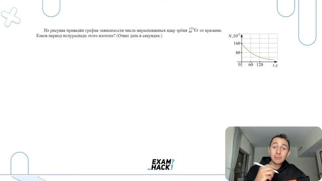 На рисунке приведён график зависимости числа нераспавшихся ядер эрбия 173 68Er от времени - №28179