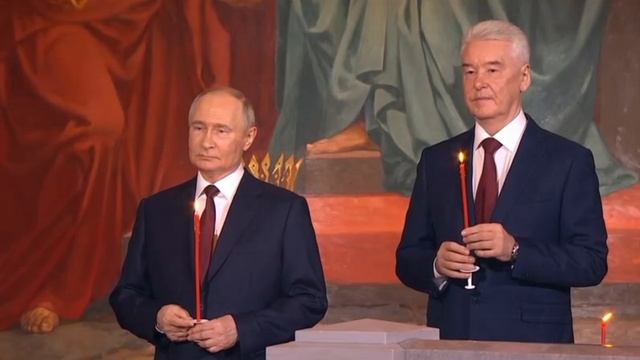 Кадры с Пасхальной службы в храме Христа Спасителя. На неё ранее прибыли Путин и Собянин.