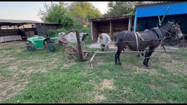 Запрягаем мулов в косилку и косим люцерну