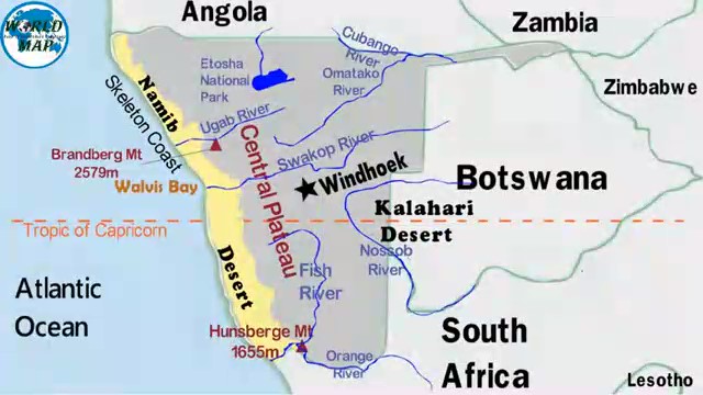 КАРТА МИР (Namibia Map Physical)