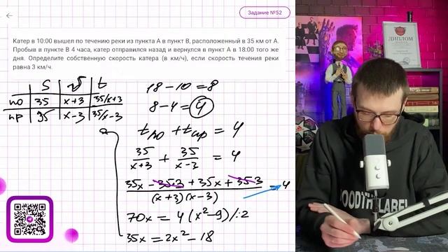 Катер в 10:00 вышел по течению реки из пункта А в пункт В, расположенный в 35 км от А - №
