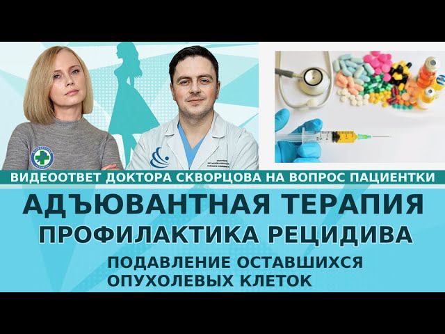 Задать вопрос доктору Скворцову https://www.skvorsov.ru/prioritet_doktor_skvortsov Подписывайтесь на наши проекты https://www.skvorsov.ru/forum_mzh ВОПРОС: Адъювантная терапия. Для чего нужна? На вопрос отвечает Скворцов Виталий Александрович доцент кафедры онкологии медицинского факультета СПБГУ, заведующий отделением №2 хирургического лечения опухолей молочной железы ГКОД Санкт-Петербурга, кмн, врач высшей категории, хирург-маммолог, онколог, реконструктивно-пластический хирург. Вопрос задает медицинский репортёр Елена Корныхова.