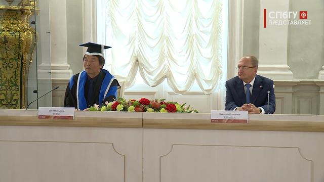 Новости СПбГУ: Китайский писатель Лю Чжэньюнь получил диплом и мантию Почетного доктора СПбГУ