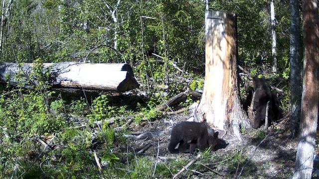 Проход медвежьего семейства (медведицы с тремя медвежатами) через солонец.
