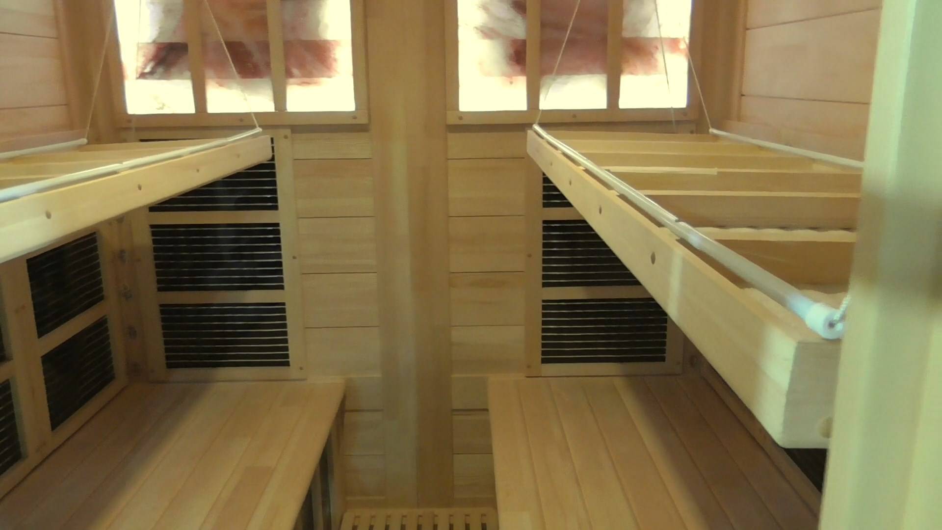 Видеообзор кедровой 4местной ик-сауны с карбоновыми нагревателями и горизонтальными нагревателями
