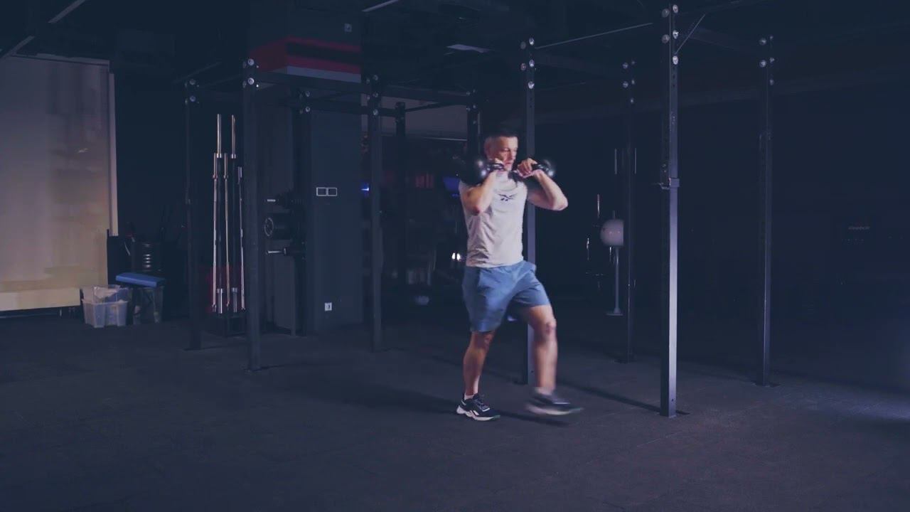 Шагающие выпады с двумя гирями на груди/ Front Rack dual KB walking lunge