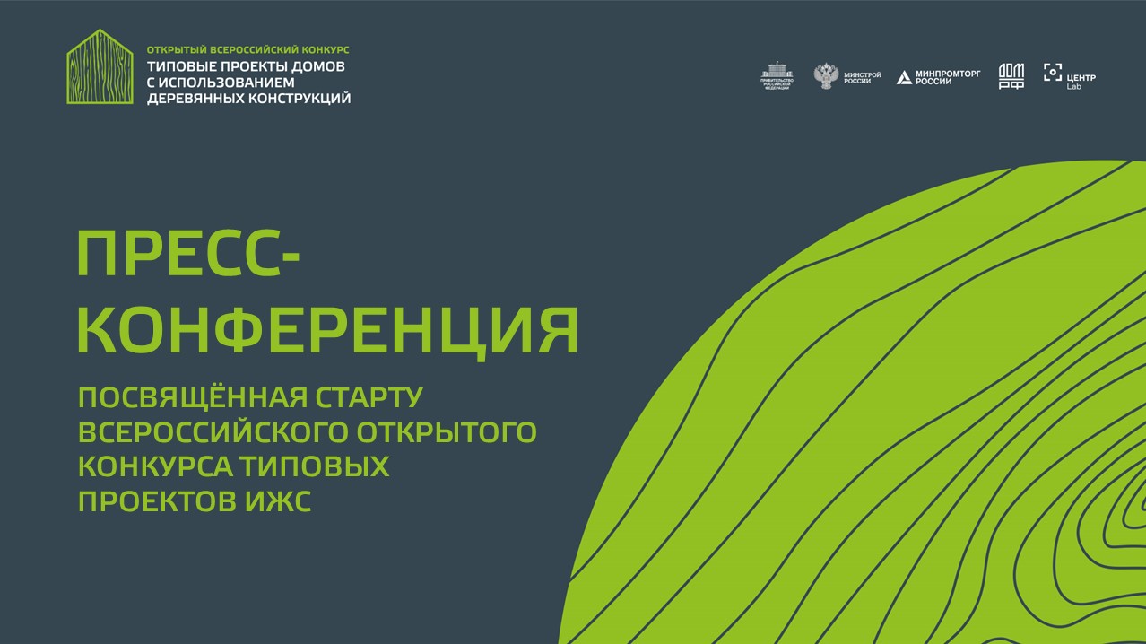 1 июля 2021г. состоялась Пресс-конференция, посвящённая старту Открытого всероссийского Конкурса на разработку типовых проектов жилых домов и социально-культурных объектов с использованием деревянных несущих строительных конструкций и других материалов. Сайт Конкурса: https://woodenbuildings.ru/