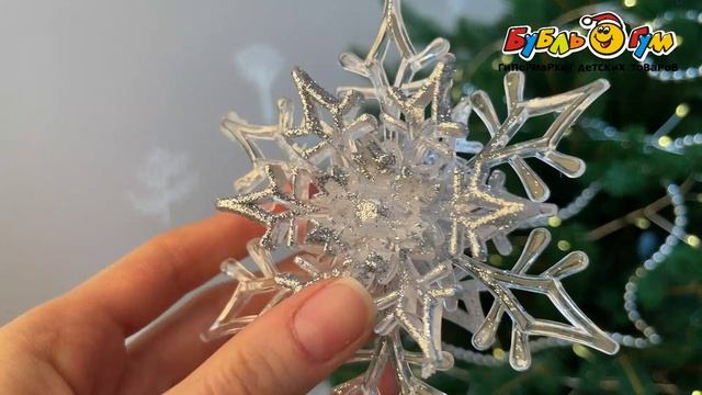 332310 Украшение елочное Снежинка объемная прозрачная с блестками 11см