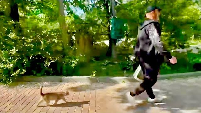 Кошка МонаЛиза ОЧЕНЬ УМНАЯ, она ждёт нас на аллее и идет за Владом домой к котятам и носушатам)))