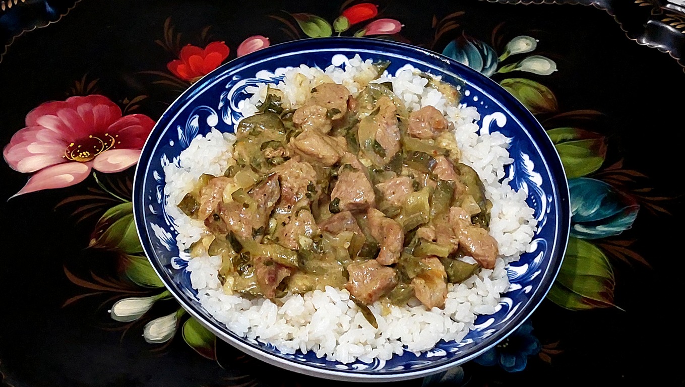 МЯСО ТУШЕНОЕ С МАРИНОВАННЫМИ ОГУРЦАМИ??