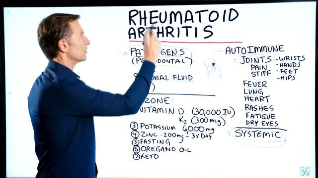 ⚠️ Ревматоидный артрит - это аутоиммунное заболевание, т.е. ваш организм атакует сам себя. Он использует антитела, и они атакуют ваши собственные ткани. Обычно артрит поражает суставы: запястья, кисти рук, ступни, бедренные суставы. Иногда бывает жар, страдают легкие, появляется сыпь, утомление, сухость в глазах. Т.е. суставами дело не ограничивается. Ревматоидный артрит - это системное заболевание, и это может указать на причину. Ведь каждый раз, когда у вас есть воспаление, следует подозревать патогены. Какие виды патогенов связаны с ревматоидным артритом? Оказалось, что определенные бактерии, которые должны быть во рту, были обнаружены в синовиальной жидкости у пациентов с ревматоидным артритом. Что же делать при ревматоидном артрите? - Озонотерапия, которая помогает при борьбе с микробами и наполняет тело кислородом. - Будет полезно принимать масло орегано. (Есть в КандиДел) - Витамин D, но добавьте К2. Нужен К2Д3-Буст. - Калий. Рекомендованная доза от ревматоидного артрита - 6 000 мг. Калий - очень важный элемент для снижения воспаления. Есть в ИммунСелл, АльфаШейк и pH-Balance. - Цинк тоже важен. Хватит одной или двух недель. 200 мг 3 раза в день. Есть в К2Д3-Буст, АльфаШей и +Гриниз. - Голодание. - Кето диета. (Лучше с нашим МСТ)