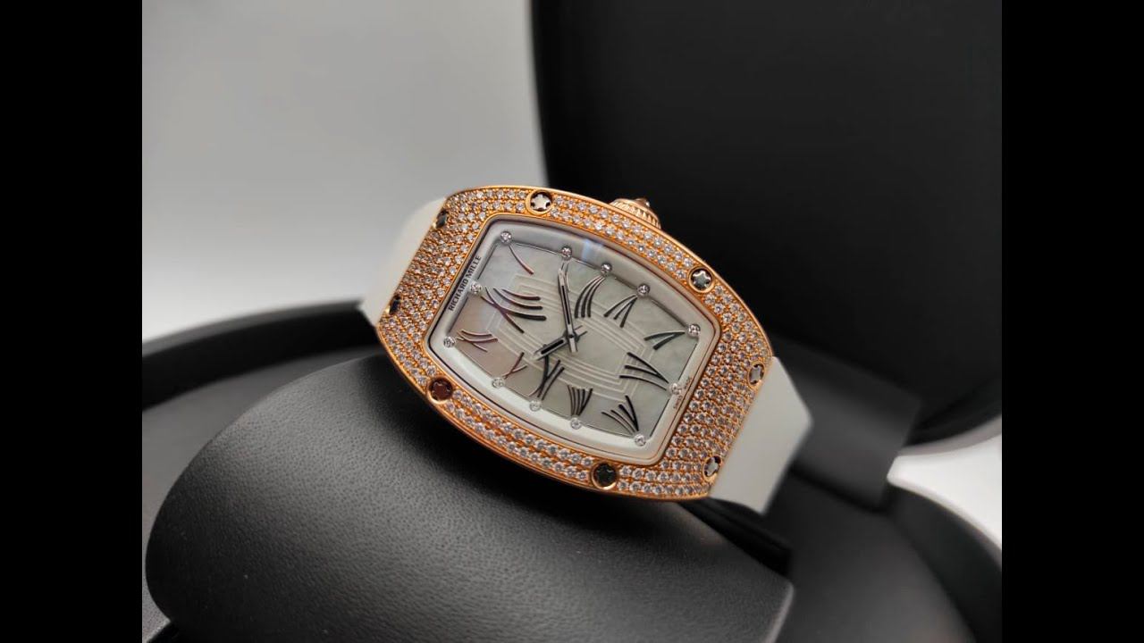 Женские часы в корпусе из розового золота 18 карат, украшены бриллиантами. Размер 45.5 мм x 31 мм. Перламутровый циферблат. https://spbluxwatches.ru/catalog/watches/richard-mille/richard-mille-rm-007-ag-pg/ SPBLUX - Невское время точнее московского https://spbluxwatches.ru/