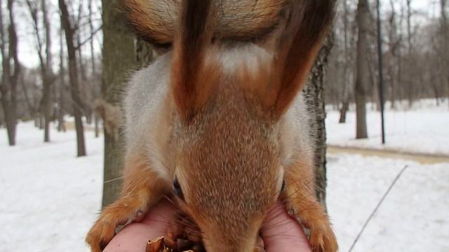 Дикий бельчонок опять привела с собой Ушастика